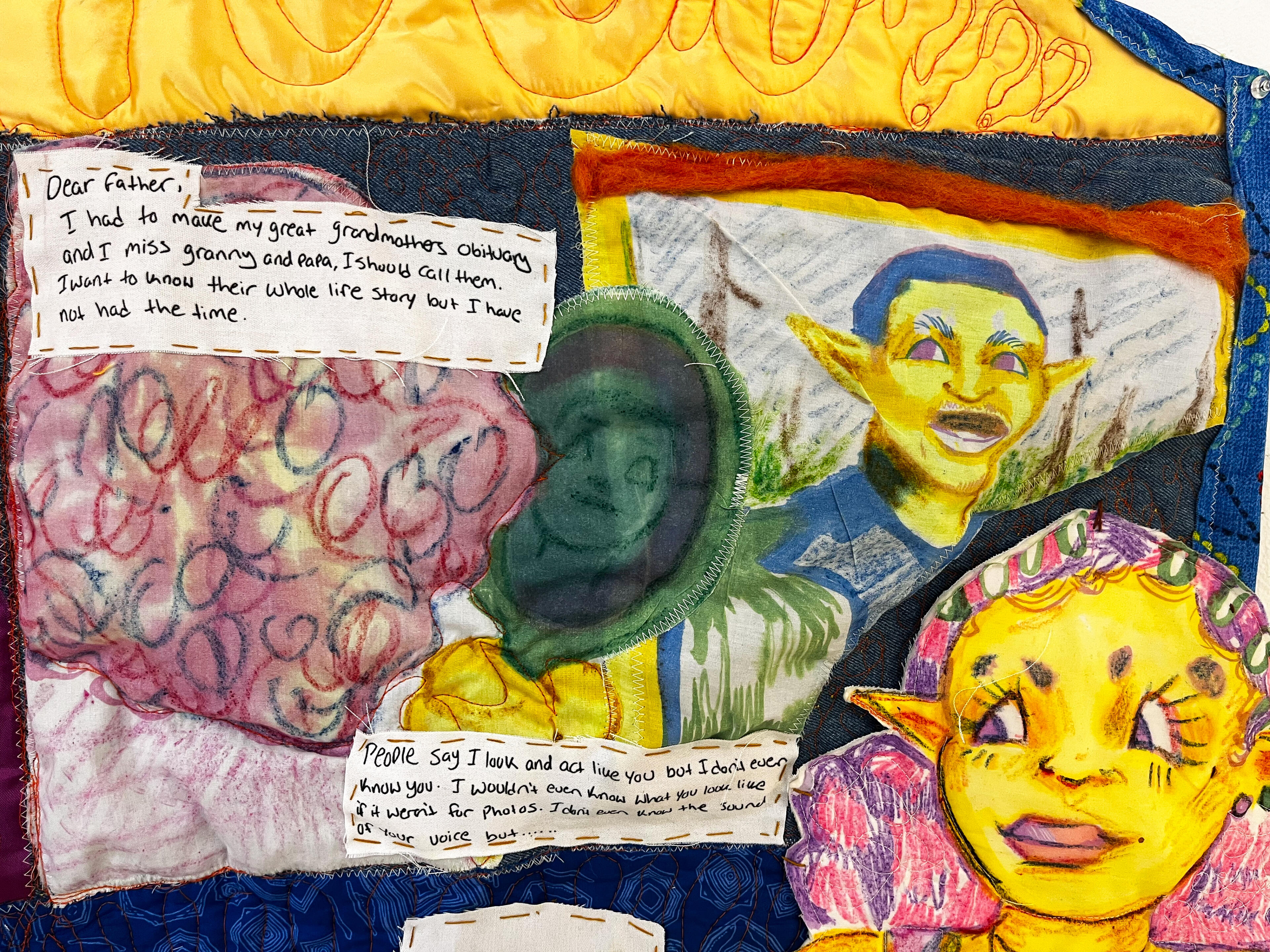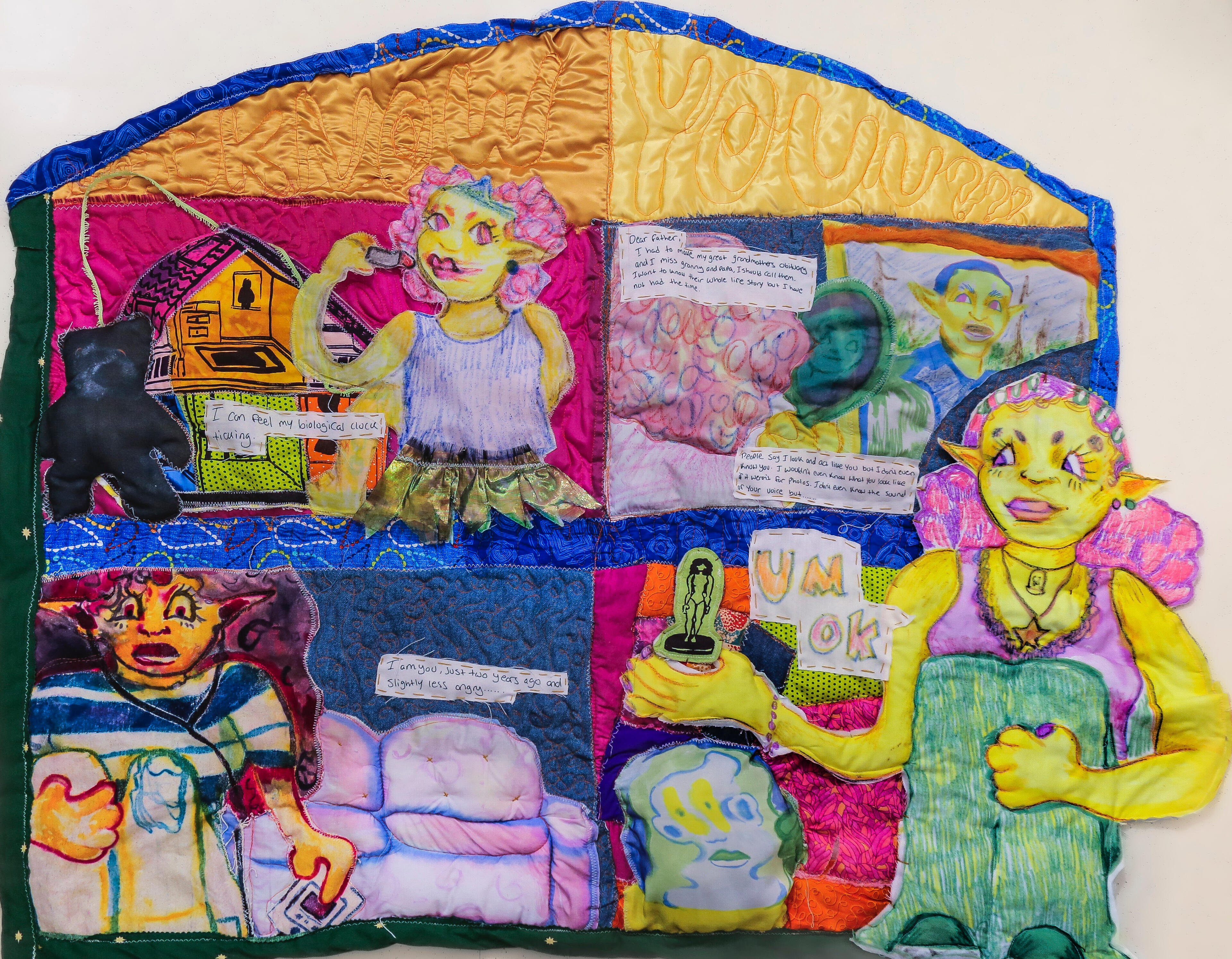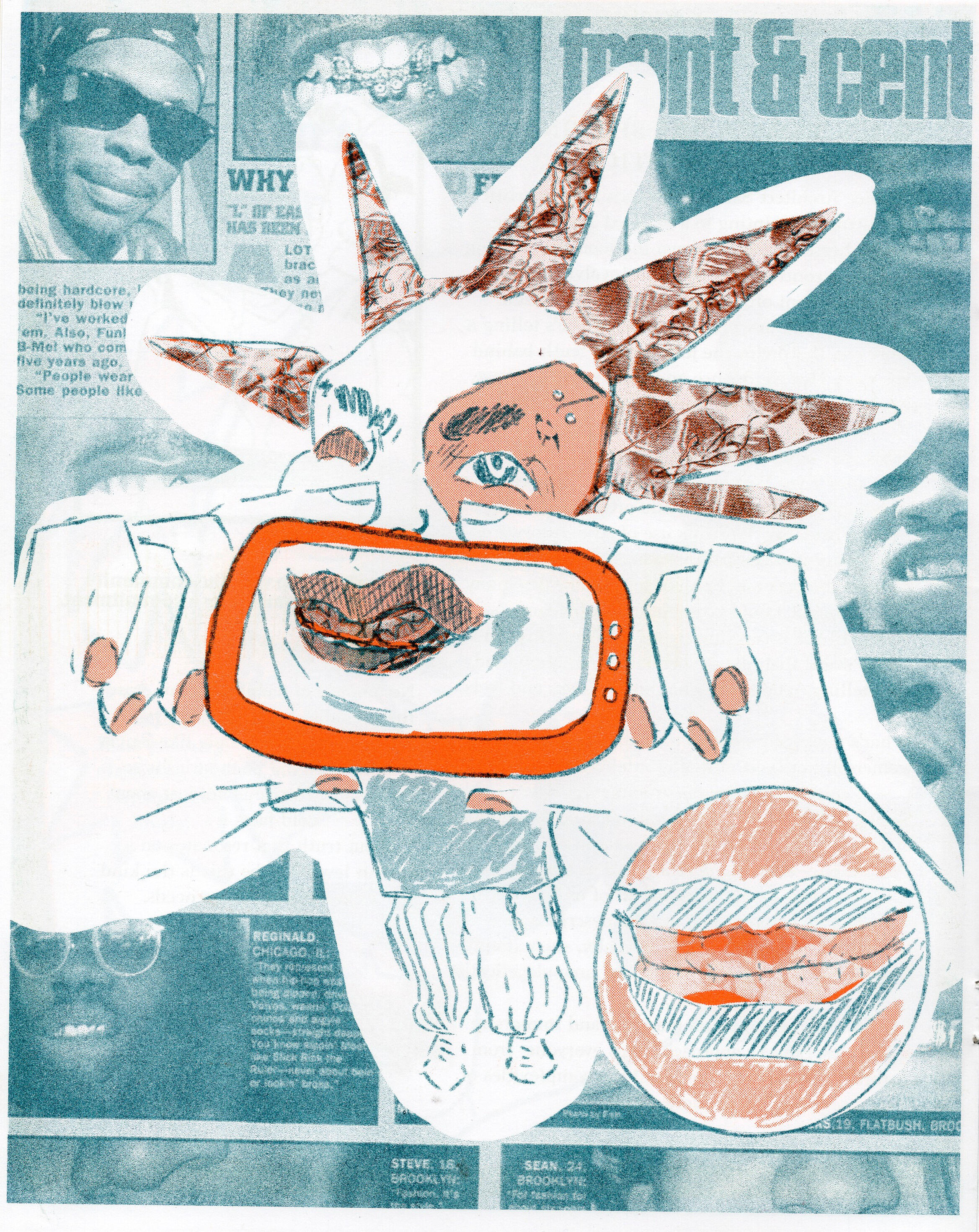 Jada Shields is a black queer Chicago based artist. Her work centers queerness, intersections of womanhood, black beauty and the human condition. Often, she plays with reality, trying to capture the complexity, subtle horror, and the dysfunctional ways of life.Working towards a BFA at The School of the Art Institute Of Chicago, Jada seeks to combine fibers and a multitude of printing methods from risograph to screen printing, often combining the 3-D with the 2-D.